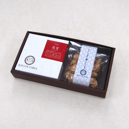 写真は和紅茶と豆菓子を1個ずつセットした例です。